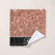 Modern Rose Gold Black Glitter Monogram Initial Bath Towel Set