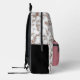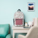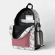 This backpack features an elegant rose gold and white marble print with a matching rose gold front pocket.