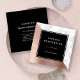 Modern, trendy design features simple white lettering in a black square, against a dramatic background of white marble and rose gold faux brushed metal foil. Add your contact information on the reverse in white sans serif font on a solid black background.