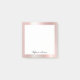 Modern personalized post-it notes have a rose gold border with your name or choice of personalization wording at the bottom in black script lettering