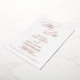 This sleek wedding invitation features modern rose gold foil script with unique industrial typography, creating a minimalist yet stylish look. The design blends contemporary elegance with a touch of modern boho flair, perfect for a chic celebration. Customizable in various colors, you can keep it simple and elegant or add your own graphics and artwork for a personal touch.