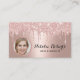 Modern Rose Gold Glitter Drips Beauty Salon Photo Business Card