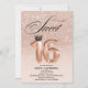 Modern Rose Gold Glitter Drips Crown Sweet 16 Invitation