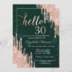 Modern Rose Gold Glitter Drips Green 30th Birthday Invitation
