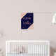 Modern rose gold glitter color block typography on customizable navy blue and faux rose gold geometric stripes chic wedding welcome sign , perfect for elegant, luxurious wedding,