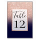 Modern rose gold glitter ombre gradient navy blue table number