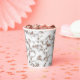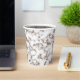 This paper cup features a modern faux marble texture in rose gold, gray, and white.