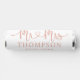 A glamorous wedding mint favor featuring "Mr and Mrs" in decorative rose gold heart script calligraphy with the couple's surname displayed as a warm, metallic monogram centerpiece on a soft white background. Rose gold tones bring a romantic, modern warmth to this elegant design. Personalize the names and wedding date for a beautiful reception treat. All text is fully editable.
