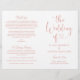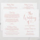 Romantic rose gold heart script spells out "The Wedding Of" across the front of this modern ceremony program with a delicate heart flourish accent. The warm metallic calligraphy brings a luxurious feel to your ceremony details on a clean white background. Inside pages are fully customizable for your bridal party, ceremony order, and a personal thank you message on the back cover. Programs are printed on text-weight paper and arrive flat, requiring a simple center fold.