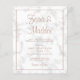 Modern budget wedding invitations with your names in an elegant script along with your wedding details in a faux rose gold, inside of a border, over a gray and white marble background. This chic and stylish design is great for a celebration in the winter. These cheap wedding invitations are printed on sheets of paper for a budget friendly option.