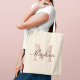 Elegant and feminine, this tote features a large rose gold monogram initial with a personalized name in flowing dark script. A versatile monogram design that makes a beautiful bridesmaid proposal gift, birthday present, or everyday accessory for any woman who appreciates refined style. Initial and name are fully customizable.