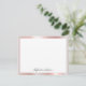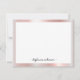 Modern personalized stationery flat cards have a rose gold border with your name or choice of personalization wording at the bottom in black script lettering. Cards reverse to horizontal large rose gold brushed metallic and white stripe pattern.