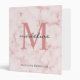 Modern Rose Gold Pink Marble Monogram 3 Ring Binder