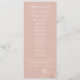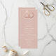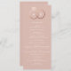 Clean and modern text is easily personalized on this chic, skinny format, wedding program. White type feels sophisticated and feminine when accented with a faux rose gold foil graphic of interlocked wedding rings on a background of dusty beige pink.