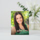 This simple, minimalist graduation postcard features a faux rose gold foil typography overlay and a full photo. The word "Graduate" is written in lowercase letters in bold, trendy lettering, with the graduate's name and graduation year below. The typography design is placed in the lower right corner and overlays a full photo with vertical orientation. On the back of the grad postcard you can add a message to recipients and/or graduation party information.