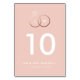 Featuring interlocked faux foil rose gold wedding rings, this double sided table number is a great addition to your reception decor. Personalize all the text including the two letter couple's monogram, the table number and get creative with the two lines of text at the bottom like your new last names, wedding date, location and even custom table names or a note about your love story.