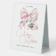 I ordered a number of items from Zazzle and all of them are wonderful. This table tent sign is more durable and professional than I expected. It’s not just a heavy cardboard tent. It has the feel and weight of durable plastic and will make a wonderful keepsake for the new mom! I highly recommend this product. .