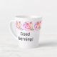 Against the white background, vibrant red, pink, and yellow roses gracefully adorn this latte mug. The modern line art style adds a contemporary twist to the classic floral motif, infusing the mug with a unique and artistic flair. It's a beautiful combination of tradition and modernity, making it a visually stunning piece that captures attention and adds a touch of elegance to any setting. Good Morning!