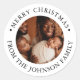 Modern Round Photo Merry Christmas Greeting Family Classic Round Sticker
