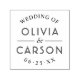 This modern self-inking rubber stamp features "Wedding Of" paired with your couple first names and wedding date in clean serif typography arranged in a circular layout. Perfect for newlyweds branding wedding favors, thank you notes, gift tags, and wedding day stationery. A thoughtful keepsake for engaged couples, bridal shower gifts, and wedding correspondence.