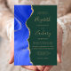 Modern Royal Blue Gold Agate Emerald Green Wedding Invitation