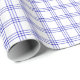 A wrapping paper designed with a modern royal blue plaid pattern on white. Customize the white background among other options.