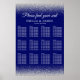 This modern seating features faux silver glitter on a rich royal blue background. This beautiful seating chart is part of a matching wedding suite that can be fully personalized.