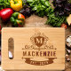 Modern Royal Crest Sign Funny Monogram Family Name Engraved Cutting Board