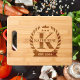 Modern Royal Crown Crest Sign Monogram Family Name Engraved Cutting Board