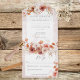 AVAILABLE WITH OR WITHOUT A QR CODE OR WITH OR WITHOUT DINNER SELECTION OPTIONS. This simple but elegant design features burnt orange, rust, cream and brown boho style floral arrangements on white arch and mottled white and rust distressed background. Created by Simply Farmhouse Press.