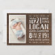 Affordable custom printed baby birth announcement photo cards. This modern rustic design features a trendy typography layout personalized with baby's birth stats and newborn photo on a faux wood background. Add more photos and additional text on the back if needed. Use the design tools to edit the text fonts and colors, add more photos and create a unique one of a kind baby birth announcement for your new baby boy.