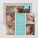 Modern birth announcement with 4 photos on the front and one on the back. All the colors can be customized. It can be personalized with your own message and baby stats.