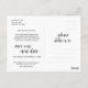 This is the modern minimal simple clean design themed, in Black font, Wedding party invitation Rescheduled (postponed / postponement) postcard (a twist in plans) . It is the perfect and elegant way to make the reschedule announcement to your friends and family.