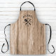 Retro cool personalized "BEST DAD EVER" bbq apron in a logo-style typography design featuring the dad's name and the year he became a father. Great gift for Father's day or a unique birthday gift for the dad who loves to barbeque. This is the wood textured farmhouse version.