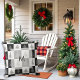 Modern rustic black and white pine trees patterned Christmas outdoor throw pillow.