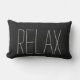 Modern rustic black burlap Relax script Lumbar Pillow