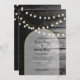 Modern Rustic Black Wood Gold Lights Arch Wedding Invitation