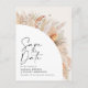 Modern barn farmhouse rustic botanical bohemian natural terracotta pampas grass stylish wedding save the date invitation.
