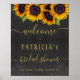 Elegant bridal shower stylish welcome sign poster template on grey charcoal chalkboard featuring a beautiful sunflowers bouquet and a trendy modern calligraphy script. Easy to personalize with your details. You can choose to customize it further changing fonts and colors of lettering.+++++++++ It is suitable for elegant summer or autumn fall rustic country garden backyard wedding shower parties.