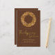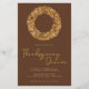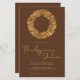 Elegant Rustic Thanksgiving Autumn Leaves Wreath Dinner Party Invitation with stylish gold foil style typography featuring a warm watercolor wreath in harvest tones and autumnal shades of pumpkin, merlot, hazelnut brown, and honey gold maple leaves. The background is a modern boho shade of brown and earth tones. Easily add your details and date for a stunning, stylish invitation. Designed by Zazzle Pro Designer BK Thompson exclusively for Cedar & String.