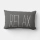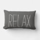Modern rustic dark gray burlap Relax script Lumbar Pillow