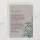 Say 'thank you' with style using this elegant and rustic botanical wedding thank you card. Perfect for an outdoor wedding or a rustic forest theme, this thank you card features beautiful green foliage, berries, and small branches against a pale, slate gray background. This card is ideal for expressing your gratitude to your wedding guests in a striking, one-of-a-kind way. The card’s graceful greenery and muted grey tones offer a timeless and classic look that won’t ever go out of style.