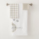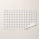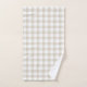 Custom-designed modern farmhouse style bath towel set featuring watercolor white pumpkin "Hello Pumpkin" design with beige buffalo plaid/check.