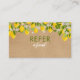 Modern rustic lemons greenery referral card. Perfect for a wide range of professions including; spas, florists, beauty treatments, hair and beauty consultants, stylists, makeup artists, beauticians and spas to name a few! Personalise by adding your contact details on the reverse with your special discount offer. Designed by Thisisnotme©