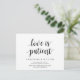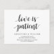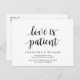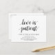 This is the modern minimal simple clean design themed, in Black font, Wedding party invitation Rescheduled (postponed / postponement) postcard (love is patient) . It is the perfect and elegant way to make the reschedule announcement to your friends and family.