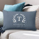 Modern Rustic Monogram Wreath Family Name Dusty Blue Navy Lumbar Pillow