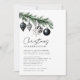 Rustic Nature Christmas Party Invitation - Our unique monochrome Christmas Celebration Invitation is so festive with modern, black and white Christmas ornaments hanging perfectly from a branch of fresh pine.