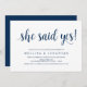 Yes, you can print on the back of your invitation for free! Most designs already have a corresponding design on the back that can be personalized using the Design Tool and going to Layers. This is a great way to communicate more information or further personalize your Modern Rustic Navy Blue Script Engagement Party Invitation. The option is really up to you.