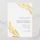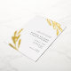 This chic wedding invitation design features rustic olive branches in gold foil, simple white background, and understated typography. This elegant yet modern design is a fabulous choice for many styles of events, from minimalist to boho. It would be perfect for an outdoor wedding or bridal shower. You can customize this design even further by adding another photo or additional text to the back. Foil is available in gold, silver, or rose gold and absolutely shines! Select real foil wedding invitations to add that wow factor!