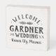 Create a custom wedding welcome sign printed on a rustic white wood panel. Personalize it with your name, the year, location or any other custom text. Click the Customize It button to change fonts and colors, add your own text and photos to create your own unique one of a kind design!